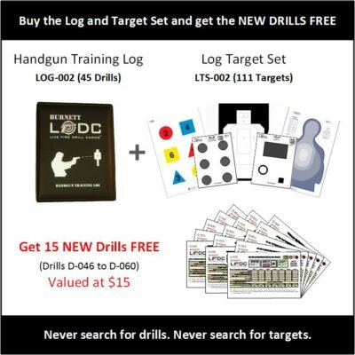 LOG-002 The Live Fire Drill Cards Handgun Training Log (with 45 drills D-001 to D-045).